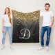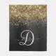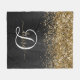 Custom Gold Glitter Black Sparkle Monogram Fleece Blanket