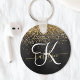 Custom Gold Glitter Black Sparkle Monogram Key Ring