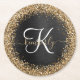 Custom Gold Glitter Black Sparkle Monogram Round Paper Coaster