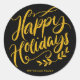 Custom Gold Glitter Calligraphic Happy Holidays Classic Round Sticker
