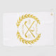 Custom gold golf club elegant, modern, minimalist, chic design. Personalised golf club button pin with laurel wreath, two crossed golf clubs, and golf ball. Personalised golf button pin with your logo, name, text, year, etc. Elegant gold golf club button pin personalised gift for golf club, golfer, golf player, team, coach. Black and White and Gold custom personalised golf club button pin