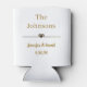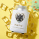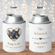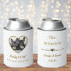 Celebrate your special day with these cute custom gold dog wedding can coolers. Simply personalise with your dog's name, your names, and a photo of your pets. This design includes many different ways of personalisation, both in writing and in a photo. The front of this design includes personalised wording, a photo of your dogs cut to the shape of a heart, and some pink hearts. The back of this design includes a place for your last name, first names, date of wedding, and an elegant heart divider, Enjoy!
