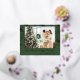 Unique, classy, trendy, pretty and decorative seasonal Christmas Holiday and Happy New Year greetings card. With room to customise or personalise with a photo, family name or names, and text of your choice. Cute golden snowflakes, Holly berries and leaves, and foliage branches pattern on a classic dark forest green background. And a customisable season greeting poem on the backside of the card, including your return address, city, zipcode and state.