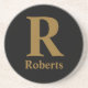 Custom Gold Initial/First/Family Name On Black Coaster