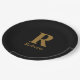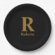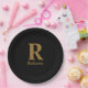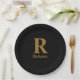 Custom Gold Initial/First/Family Name On Black Paper Plate