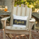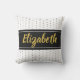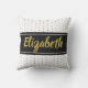 Personalise your pillow with your name in faux gold script. The background is a black polka dot pattern on a white pillow. The pillow has a classic black-and-white colour scheme.