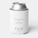 Custom Gold Text White Can Cooler. Simple. Date, place. Contact designer for custom colours.