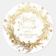Custom Gold White Christmas Eucalyptus Wreath Classic Round Sticker
