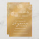 Customise this modern, stylish golden gradient wedding anniversary invitation. This 50th wedding anniversary party invitation template is ready for you to add the couple's names and wedding anniversary party date, venue location and details, and other information as needed. All the text is editable. There is also additional text template on the back side if needed. This stylish golden toned card has simple, elegant white script saying "celebrating 50 years" which can be edited to any number for another anniversary year. The illusion of glitter or fairy lights is created with a golden gradient background. This is not real gold foil but a tan golden effect. Personalise this anniversary save the date card for a wonderful golden wedding anniversary party.