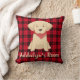 Cute child's bedroom decorator pillow with an adorable Golden Retirever puppy wearing a red scarf on a red and black buffalo plaid background. Personalise by adding your child's name.
