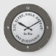 Purchased this online and it got delivered quickly. It was a present for my Dads 70th birthday. He loves clocks so decided to get him one with something written on it. Battery went in and it started working straight away. Dads had no issues with it. Printing was just how it came up online.