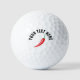 Custom golf balls with red chily pepper logo. Add a personalised name or quote. Unique golf ball set gift for men and women. Cool sports gift for retiring friends and family. Add your own funny quote or monogram initial letters. Also available on other high quality golfing brands. Fun presents for avid golfer, golf buddy, retired dad, pensioner, retiring husband, retiree, boyfriend, boss, colleague, coworker, wife, mum, caddie master, coach, trainer, best friend, fan, enthusiast, chef, restaurant owner etc. Make your golf balls uniquely identifiable with your personal mark or logo. Upload your image optionally. Also fun for Birthday or Christmas.