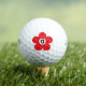 Custom golf balls with red flower monogram logo. Unique gift idea for golfers and golfing fans. Available on Callaway, Titleist, Bridgestone, Wilson and other good brands. Personalised template with custom text. Cute floral design in any colour.