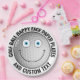 8 x personalised text sports Golf Ball custom Happy Face Large 9" Disposable Party Paper Plates - Blue Eyes version. Great for golf player / lover custom birthday party supplies or golf theme baby shower. See store for full range of personalised options. Fully personalise all text with your message(s). One-click customisation of upper and lower text by clicking 'Personalise this template'. Make your own party plates for a child's birthday party or anyone who likes funny party decor.