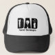 This Golf trucker hat featuring "DAD" written in stylish font with golfer silhouette, golf ball and golf head cover is a perfect gift for a golf lover dad. You can customise this design with your dad's name by clicking "Personalise this template" button. Click "Edit Using Design Tool" to change text fonts and colours to create your own unique one of a kind design.