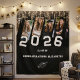 This custom graduation tapestry backdrop is designed to make your celebration unforgettable, featuring your personal photos, custom name (e.g. Congratulations Elizabeth!), and graduation year (2026 or any year) in a bold, eye-catching layout.