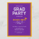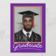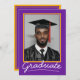 Celebrate your graduate's milestone with this elegant, customisable graduation invitation card. Featuring a classic purple and gold school theme and space for your graduate’s photo, name, school, and event details, this design offers a timeless way to invite loved ones to the big day. Perfect for high school or college graduations!
