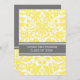 Graduation party invitation custom card in elegant and sophisticated bright lemon yellow, grey and white classic vintage floral damask pattern. Customise this grad announcement card by adding the year of your graduation and your graduation party details.