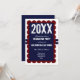 Custom Graduation Party Invitations with a Scalloped Edge and navy blue and red colours. A fun and colourful graduation party invite for a boy or anyone with red and blue school colours. A fun and bold faded grunge text font. Just add your own graduation party details to make your own custom graduation party invitations.