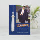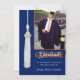 Blue & orange custom graduation party invitation. Add the date, graduate's name and photo to the front of this Graduation card, and personalise info on the back. Card designed by Rycky Creations; white tassel original artwork©delightful-doodles. Contact artist for a card with your own school colours!