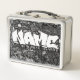 This is a standard metal lunchbox that appears to work just fine. We designed this box ourselves with an uploaded photo and custom text on the front and back. It looks absolutely beautiful except the front of the lunchbox is not centered like it shows in the photo. The print borders don't align with the inset flat part of the box where the preview photo online showed it perfectly centered in there. The back looks nice and centered though.