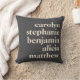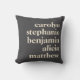 Make your space more personal with this custom name pillow, designed with a bold typographic layout on a modern dark background. Perfect for showcasing family names, a friend group, or meaningful words, this stylish throw pillow adds a cosy and sentimental touch to any home. Customise with your own text to create a thoughtful gift or a unique decorative accent.