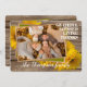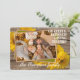 Unique, classy, trendy, pretty and decorative Thanksgiving holiday card. Unique, classy, trendy, pretty and decorative Thanksgiving holiday card. Cute GRATEFUL BLESSED GIVING THANKS text and room to customise or personalise with a photo and names (or family name) of your choice. With cute classic warm yellow fall Mums flowers on a weathered looking grey rustic farmhouse inspired barnwood planks pattern background design. And a customisable season greeting poem on the backside of the card.