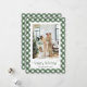 Custom green and white plaid photo holiday cards featuring a green and white chequered pattern. Easily personalise these gingham check photo holiday cards with your photo and family name.
