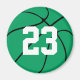 Custom Green Basketball Round Fridge Magnet: Make your own personalised green basketball fridge magnet by typing your own jersey number or other text such as team name or initials, player name or initials, school letters, etc. You can also delete the placeholder text and leave it blank if you just want a simple green basketball magnet. These work great as affordable team gifts for players, coaches and fans of basketball teams with green team colours – discounts are available for bulk orders. They can also be used as senior gifts for your high school or college basketball seniors, or just as a unique birthday or Christmas gift for bball fanatics.