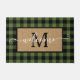 Beautiful contemporary green and black chequered plaid pattern with friendly Welcome greeting written in an elegant stylish calligraphy font. With room to customise or personalise with family name monogram or initial of your choice. Original simple rustic style decor accent for decorating the front porch or doorstep of your country cottage house, log cabin, mountain lodge, fishing camp, lake or river vacation home.