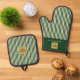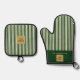 Custom Green & Cream Stripe Oven Mitt & Pot Holder Set