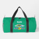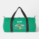 Custom green duffle bag for tennis player. Personalised gifts for tennis players, coach and fans. Add your own personalised text like a funny slogan, quote, joke, saying, monogram or name. Cool sports Birthday present for him. Great for teams, dad, son, friend, brother, daughter, kids etc. Custom colour bags. Cute design with yellow tennis ball and palm tree.