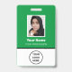 Custom Green Employee Photo, Bar Code, Logo, Name Badge.