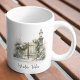 Enjoy hot cocoa, coffee, or tea with this festive watercolor winter mug. The snowy gate and pine greenery holiday illustration bring cosy seasonal charm to your daily routine. A perfect stocking stuffer, rustic Christmas gift, or everyday winter drinkware for anyone who loves Nordic-inspired designs.