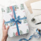 Wrap your gifts in cosy countryside charm with this customisable wrapping paper featuring a red barn nestled deep within a lush green pine forest. The snowy ground and soft watercolor textures evoke rustic holiday snowy Christmas cards and classic festive illustration vibes, while the clean white background keeps the look fresh and modern.
