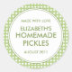 These personalised canning stickers are stylish and practical. Easy to customise with your name, and the kind of treat or preserve, and the date the food was created. This pretty canning label has a border of green with white polka dots and green text.