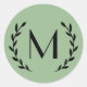 Custom Green Sage Wedding Laurel Letter Classic Round Sticker