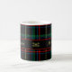 Personalise this handsome and beautifully lettered coffee mug. The design field is black, dark green Scottish tartan plaid, with red, blue and yellow accents. The lettering is a lovely easy-to-read script in yellow against a black band around the midline of cup. Put the name or initials of your choice on both sides of cup with Zazzle's editing tool. In the centre of the lettering field. between the lettering templates is a lovely script-style decoration.
