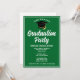 A modern custom graduation party invitation in green with bold white typography for a high school, college, or university from the class of 2025. Customise with your school name and graduating class under the lovely cursive script for a great personalised graduate invite card.