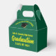 This modern green and yellow custom senior graduation party favour box features your high school or college name for the class of 2025. Customise with your graduating year under the chic handwritten script and black grad cap for a great personalised graduate keepsake gift.