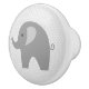 Custom grey elephant nursery door and drawer knobs. Cute zoo animal design with grey and white polka dots pattern background. Customisable background colour. Sweet kids illustration for childrens bedroom. Gender neutral vector graphics with polkadots. Make your own interior. DIY accessories.