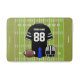 Football players, grid iron fans or American football coaches will love this football sports design featuring a Black and grey grid iron football jersey which can be customised with any number and name to create a unique gift or football team award. Also featured beside the football jersey is a water bottle, an American football and a grid iron helmet and the background is a marked football field with the yard lines.