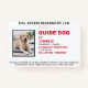 Guide Dog - Easily identify your dog as a working service dog, while keeping your dog focused and cut down on distractions while working with one of these k9 service dog id badges. Although not required, a Service Dog ID badge gives you and your service dog peace of mind and ease of travel without hassles and questions when seeking public access. Our Service Dog Id Badges are TSA compliant and have the United States Federal Laws on the back with ADA website and contact phone number. Customise with your Service Dog’s photo, name, handler’s name and city and state.