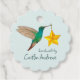Custom gift tags featuring a rufous-tailed hummingbird carrying a star.