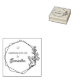 This custom "Handmade with love" rubber stamp features a flower frame with a custom name.