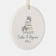 This ornament features a cream background with a blush floral cake sketch in a minimalist, elegant layout. The cream and blush palette pairs with handwritten script names and date for a soft, romantic keepsake. Personalise using the editable text template with the couple’s name and wedding date. A simple, timeless detail for celebrating a newlywed year or gifting the bride and groom.
