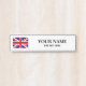 Custom hanging desk name plate with British Union Jack flag. Patriotic name plate template with custom job title or professional company name. Make your own with a custom name and formal job function like executive producer, manager, ceo, doctor, janitor. Elegant typography template. Perfect for business boss, office employee, coworkers, colleagues, coach, school teacher, dean, principal, office workers, real estate agent, director, dentist, producer, receptionist, attorney, lawyer etc. Available in silver, rose gold and black color. Add your own logo optionally and stick / screw to the room door or place on your desk table. Flag of GB Great Britain, UK United Kingdom, England.