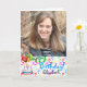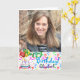 You can custom this happy birthday greeting card with a photo and text. This birthday design features a cake, balloons, and party streamers. You can customise the greeting and add your personal touch to it.