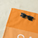 Happy bright coloured beach towel with pastel, pale and soft orange, light and medium seaglass and seafoam ocean blue green coloured stripes pattern, and fun SAND BEACH SURF OCEAN quote text. Celebrate summer time... beach time, pool time, fun time!