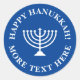 Custom Happy Hanukkah stickers and envelope seals. Make your own custom envelope seals and party favour sealers. Add your own text around the menorah candle holder logo. Blue and white template for Jewish Holidays.